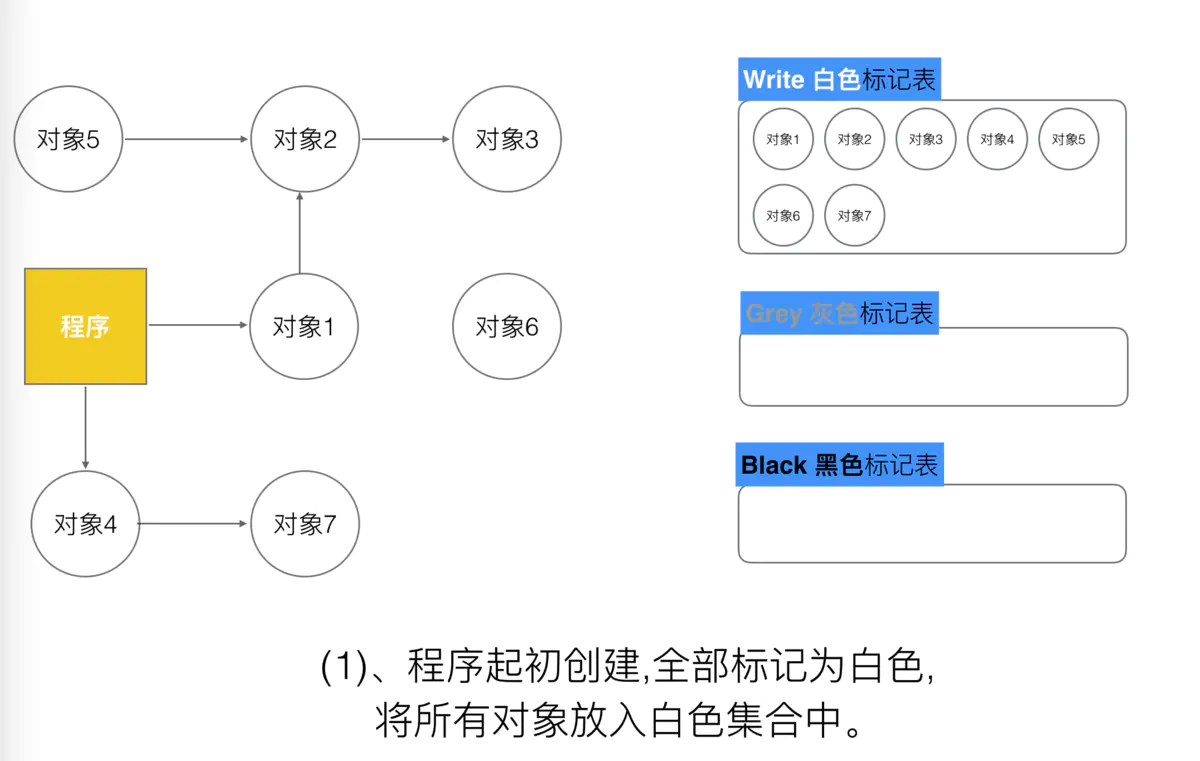 第一步 , 就是只要是新创建的对象,默认的颜色都是标记为“白色”.