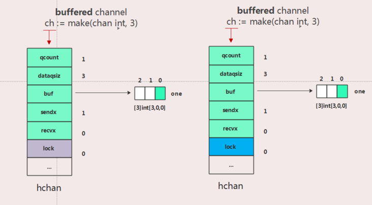 - lock mutex // 互斥锁,为每个读写操作锁定通道,因为发送和接收必须是互斥操作。