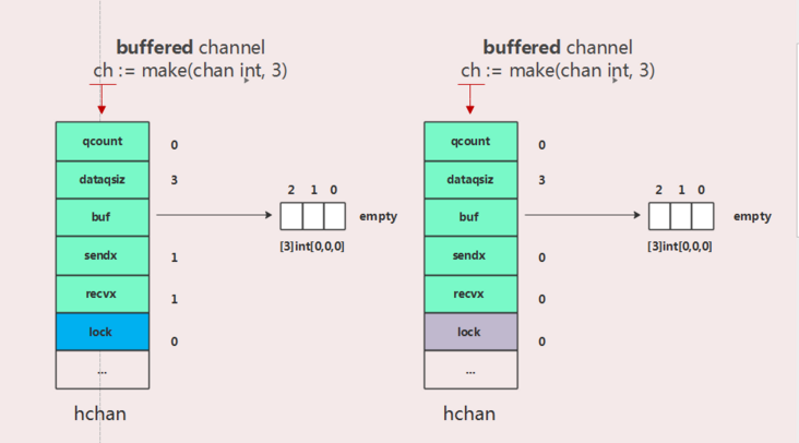 - sendx uint和recvx uint是环形缓冲区的状态字段,它指示缓冲区的当前索引 - 支持数组,它可以从中发送数据和接收数据。
