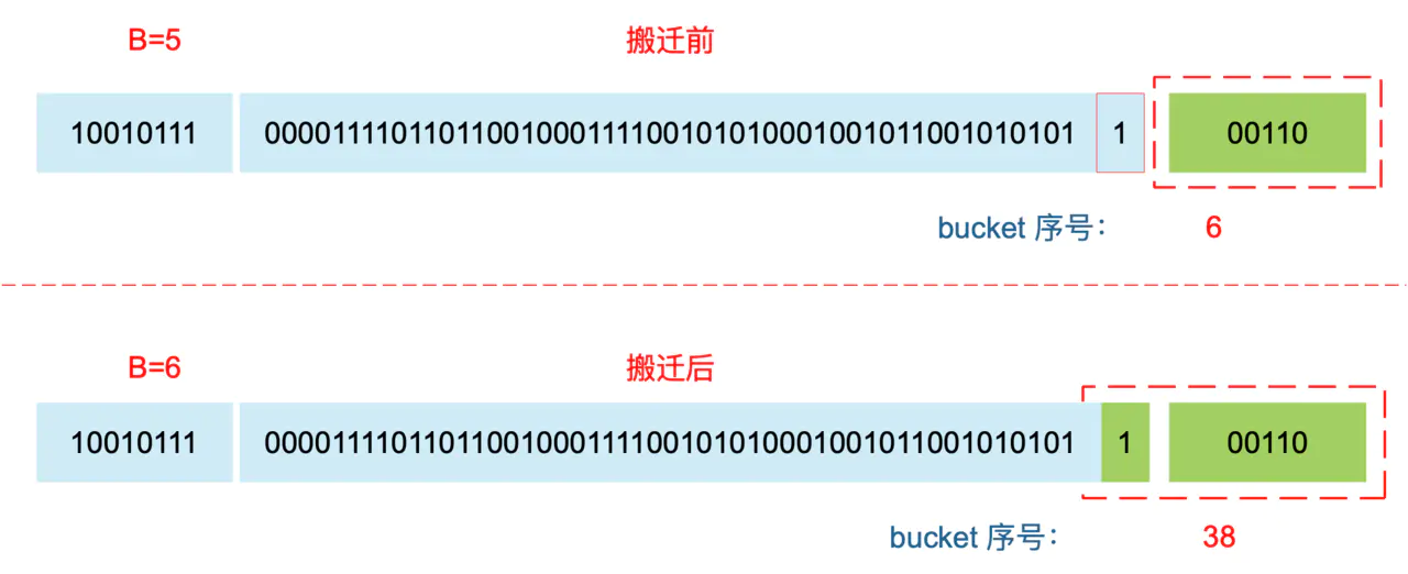 // 扩容的时候,buckets 长度会是 oldbuckets 的两倍
