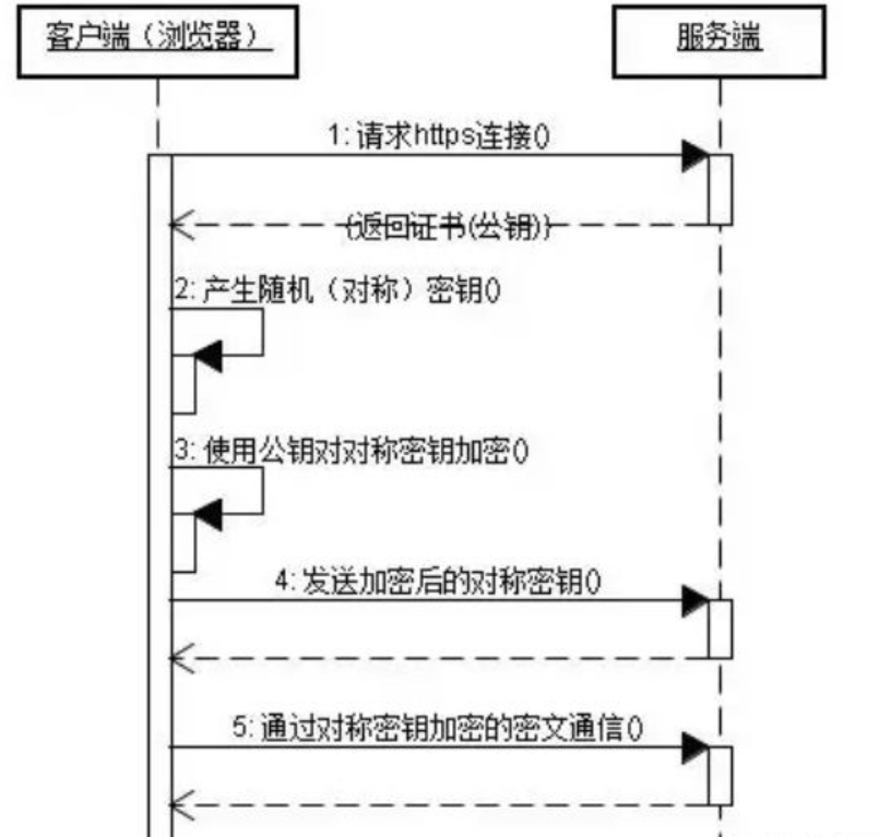 - 服务端收到客户端请求后,会将网站支持的证书信息(证书中包含公钥)传送一份给客户端。