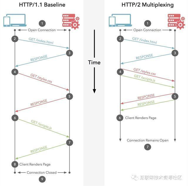 多路复用:通过单一的HTTP/2连接请求发起多重的请求-响应消息,多个请求stream共享一个TCP连接,实现多流并行而不是依赖建立多个TCP连接。