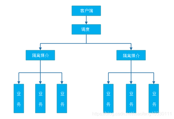 主要通过线程池进行隔离,也是实现服务隔离的基础。(可将图中隔离媒介换成线程池即可)