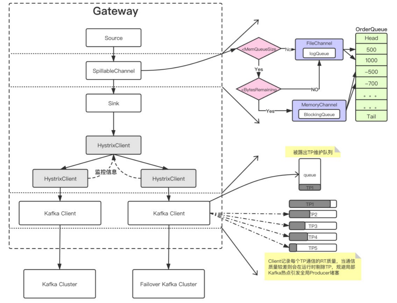 我们经常使用 failover 的思路,但是完整的 failover 需要翻倍的机器资源,平常不接受流量时,资源浪费。高负载情况下接管流量又不一定完整能接住。所以这里核心利用熔断的思路,是把抛弃的流量转移到 gutter 集群,如果 gutter 也接受不住的流量,重新回抛到主集群,最大力度来接受。