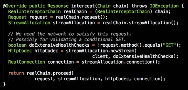 回到 OkHttp,在这里我们先简单分析一下 ConnectInterceptor 和 CallServerInterceptor,看看