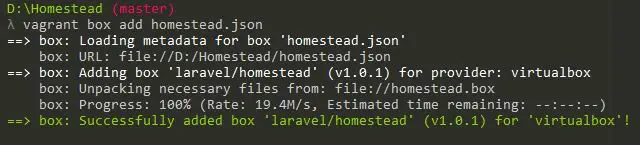 如我们要下载最新的版本号为1.0.1的virtualbox版的box文件,链接即为:https://atlas.hashicorp.com/laravel/boxes/homestead/versions/1.0.1/providers/virtualbox.box