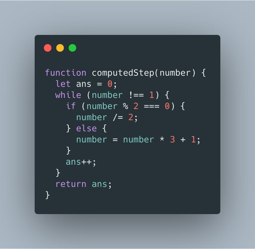 比方说,x=3 的权重为 7 。因为 3 需要 7 步变成 1 (3 --> 10 --> 5 --> 16 --> 8 --> 4 --> 2 --> 1)。