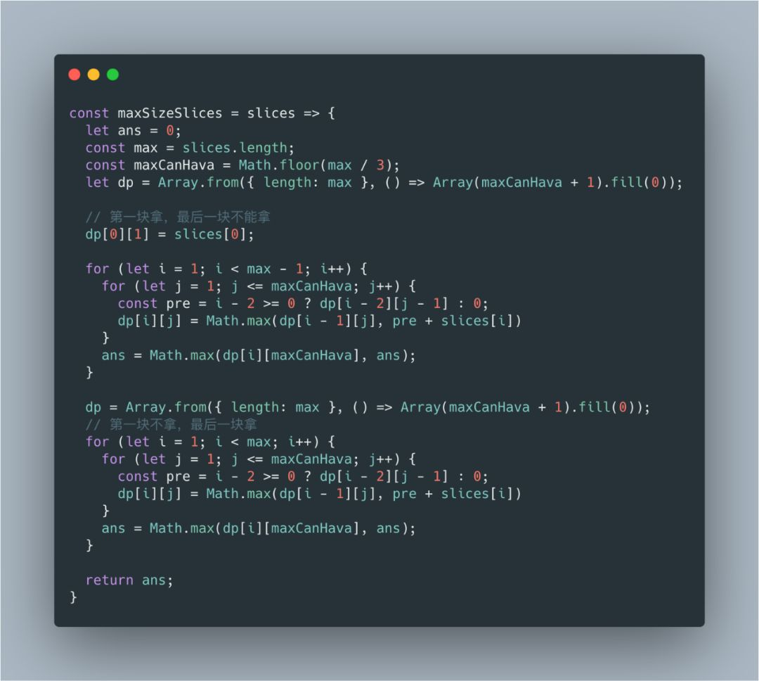 每一块披萨的大小按顺时针方向由循环数组 slices 表示。