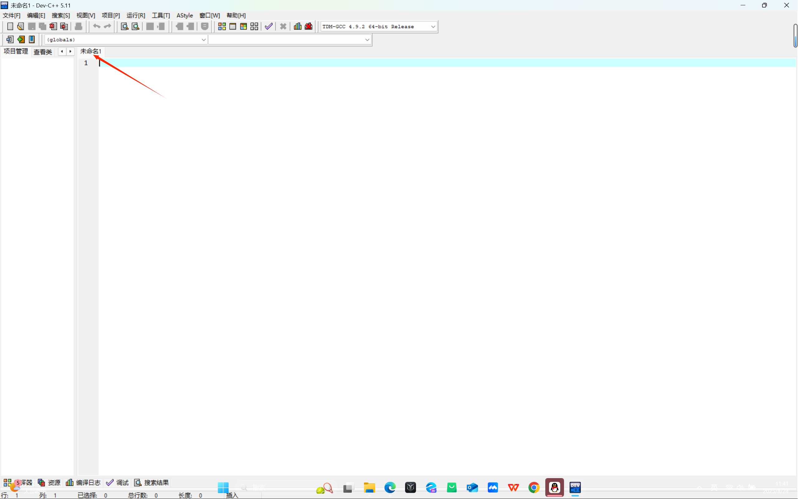 然后就出现了一个新的文件, 在这里面就可以写代码了。(觉得字体小了,可以按住ctrl(键盘左下角) + 转动鼠标滚轮调节大小)