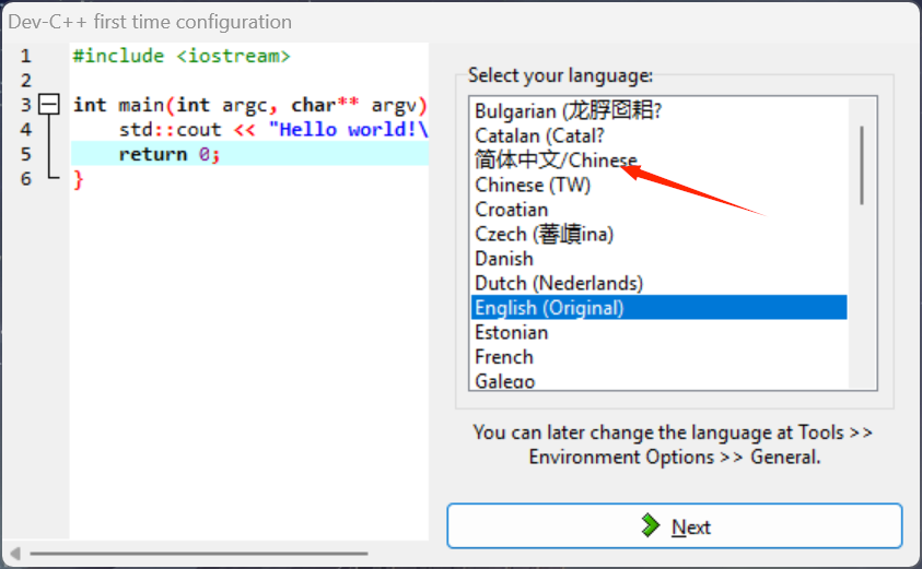这里就可以直接选择简体中文。其余就是一直next, ok就行了。