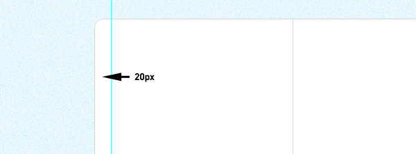 接下来,在此处绘制一条指导线可能会有所帮助-距容器边框的边缘约20像素。 我们将以此为指导将所有内容放置在何处,以使内容看起来统一且对齐。