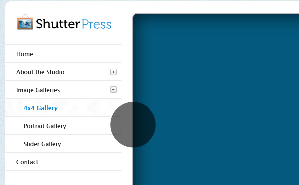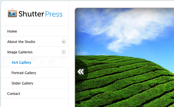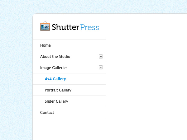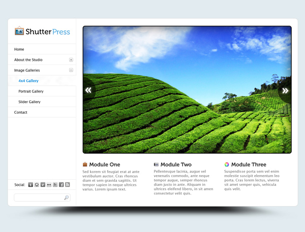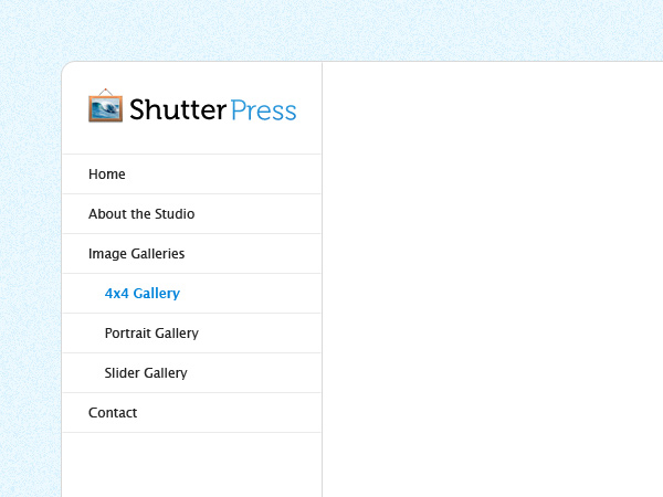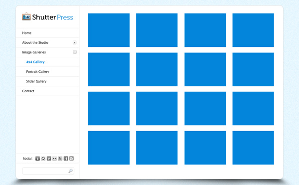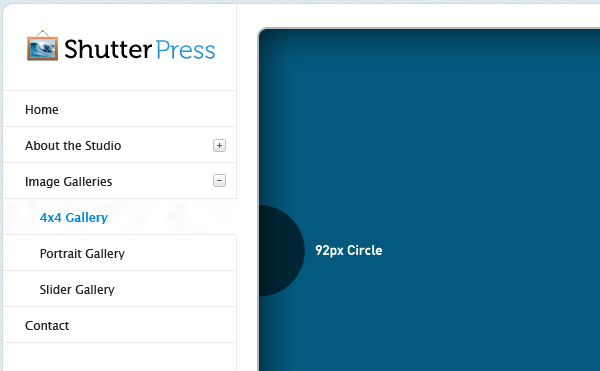 在这里,我不会做太多深入的介绍,因为,您可能会使用自己的徽标;)。 简而言之,我从一个简单的框架图标开始(来自Noble图标集),然后将我自己的照片添加到框架中。 然后我在26pt处使用了Museo字体; 使用2种不同的权重和颜色创建一些视觉效果,我在图标旁边很好地设置了模板的标题“ ShutterPress”。