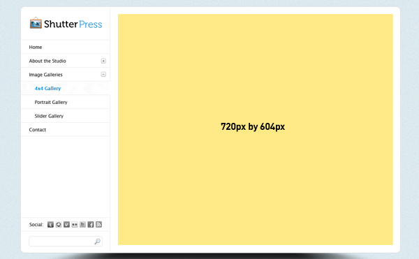 这些考虑的结果是一个有效的空间,该空间比我们在图库模板中使用的空间稍大: 720px x 604px 。