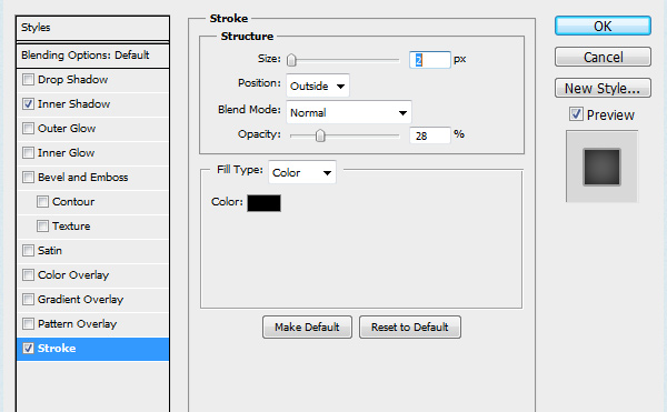 我们将添加一些细微的样式来减轻这种负担,并使我们的图库网格更加精致。 将以下图层样式应用于每个缩略图: