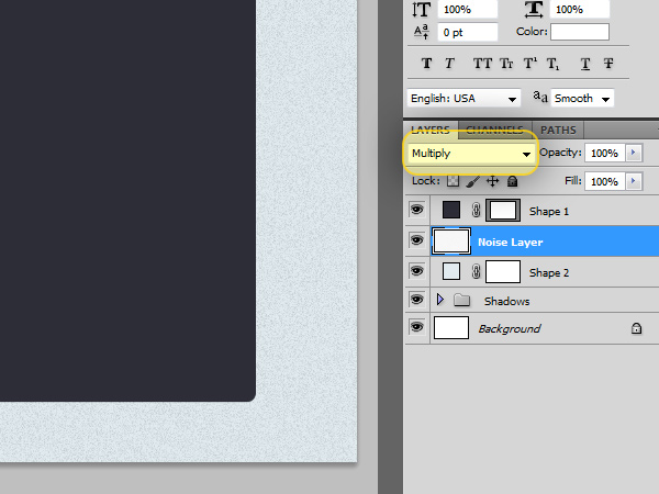 在混合模式面板下,将新的“噪声层”设置为“多个”,然后在该层后面绘制一个矩形(填充颜色#e1ebef )。
