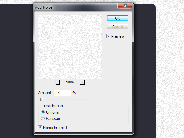 现在,使用“ 滤镜”>“噪声”>“添加噪声”添加一些噪声 。 您可以根据自己的喜好进行调整,但是我已经用了14%的金额。