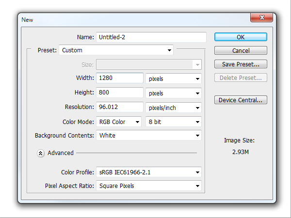 首先创建尺寸为1280 x 800像素的新文档。 为什么? 因为这将为我们提供一块不错的大画布。 我们最终设计的宽度实际上不会是1280px,但是我们希望看到一些背景颜色,就像通常在大浏览器窗口中看到的那样。