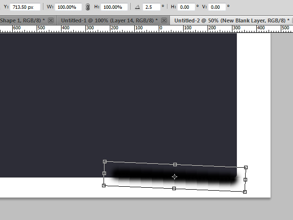 最后,我们将使用“ 自由变换”工具( Cntrl + T )将其稍微倾斜以产生弯曲效果(我使用大约2.5的角度)。 为什么要把这个角度呢? 因为如果光源看起来有些弯曲,它将有助于创建一些额外的尺寸。