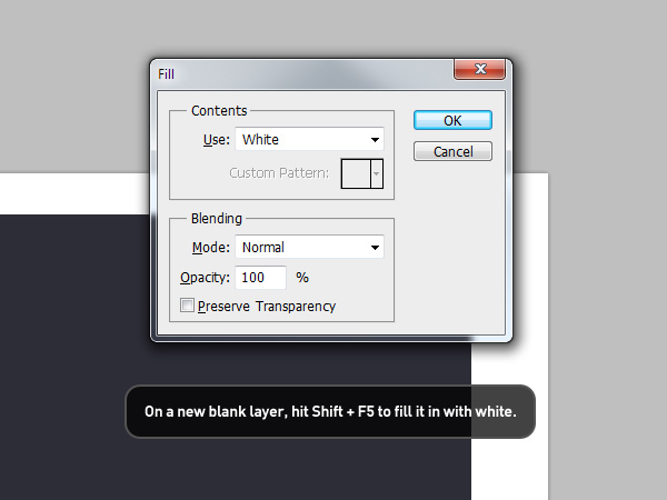 首先创建一个新的空白层,并用白色填充( Shift + F5 )。
