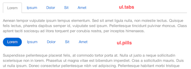标签和药丸非常容易创建,因为它们只是常规的旧列表。 当然,它们不起作用-Bootstrap与样式有关。 只需使用tabs卡式界面的tabs类或药丸选项卡的pills类构造列表即可。 就像上一节中的导航栏中一样,将active类添加到列表项将突出显示它。