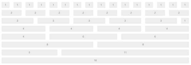 如上图所示,我们可以使用不同类的组合来创建等于940px的总宽度,包括每个像素增加的20px边距。 例如,使用四个div.span4类将翻译为220 + 20 + 220 + 20 + 220 + 20 + 220,这一旦我们推开计算器,便等于940像素。 通过将所有这些包装row类中,Bootstrap通过将整个对象向后移动20个像素来解决最后一列的20个像素裕量。