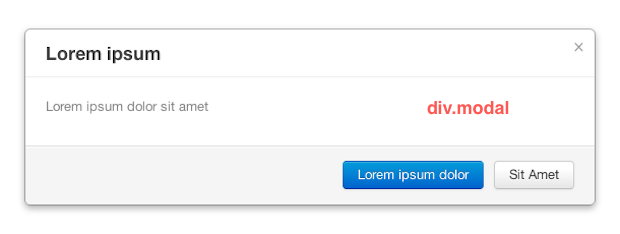 然后,在该标签内,我们放置三个部分,第一个部分是标题。 标头具有一类modal-header ,仅包括两行,标题的<h3>标记,以及(可自定义的)链接的“×”(可自定义以关闭弹出窗口)。