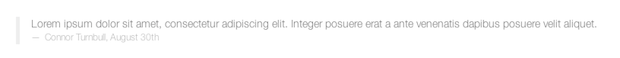 Bootstrap确实需要更多解释的地方是您何时使用<blockquote>标记。 您可以单独使用标记来显示缩进的报价,左侧带有粗的灰色边框。 但是,可以通过在内部嵌套其他标签来赋予报价来增强此功能。 当涉及到添加属性时,只需将引号文本包装在<p>标记中,并将源代码包装在<small>标记中,Bootstrap将自动设置样式并在源代码前放置一个破折号。