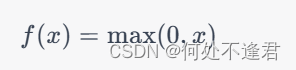 ReLU(Rectified Linear Unit)激活函数是深度学习中常用的激活函数之一。它的数学表达式如下: