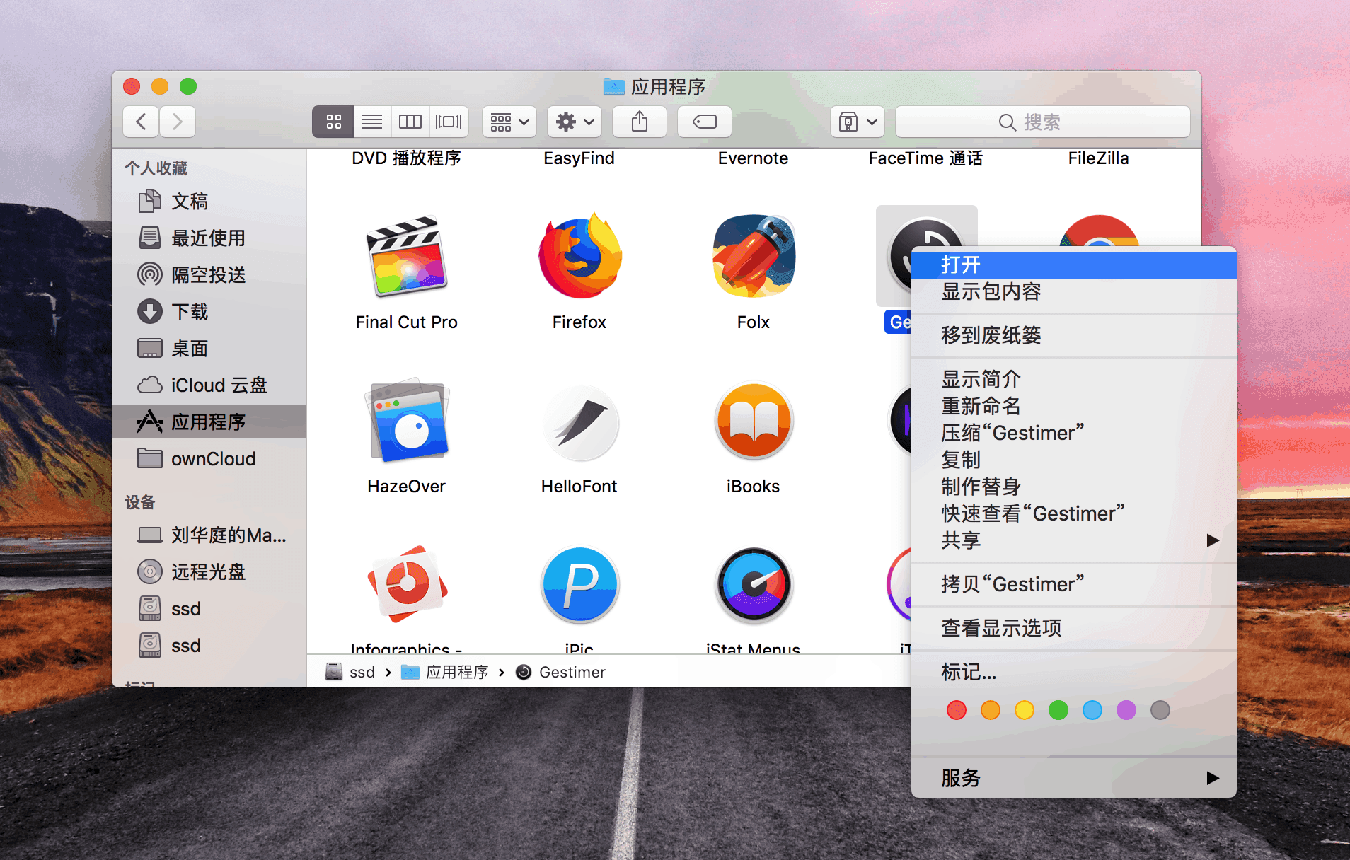 1.打开应用程序,找到你要打开的软件。按住control键,点击应用打开(或者右键打开)