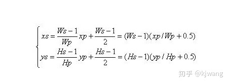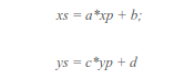 令视平面坐标系中的点(xp, yp)对应于屏幕坐标系中的点(xs, ys),它们的变换关系如下: