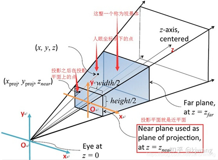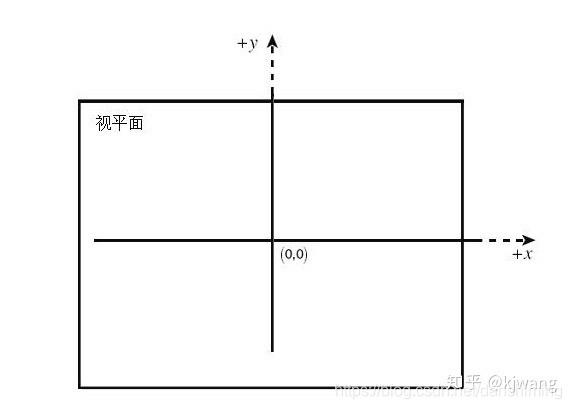 透视投影后,三维模型就会投影到投影平面,投影平面的坐标系模型(x轴向右,y轴向上,原点在平面中心)如下图