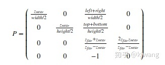 参数见上,另外还有一个,本质也是一样的,它应该是设置对称的视锥体的透视投影矩阵,即: