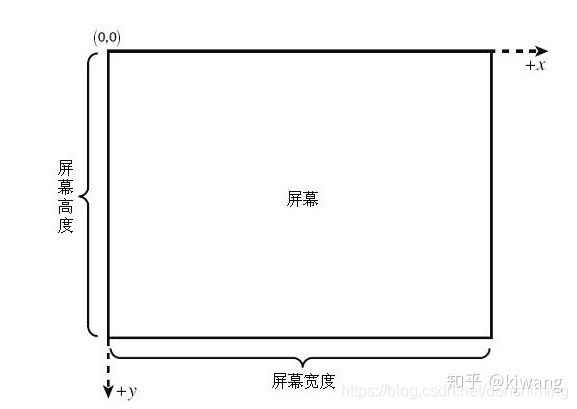而我们的屏幕的坐标系模型(原点在左上角,x轴向右,y轴向下)如下图