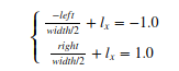 第二步:将近平面(注:z=−znear)的左、右边缘x坐标代入(1)得: