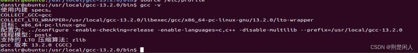 其中/usr/local/gcc-13.2.0表示编译完成安装目录,请事先确保该目录存在。