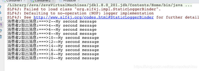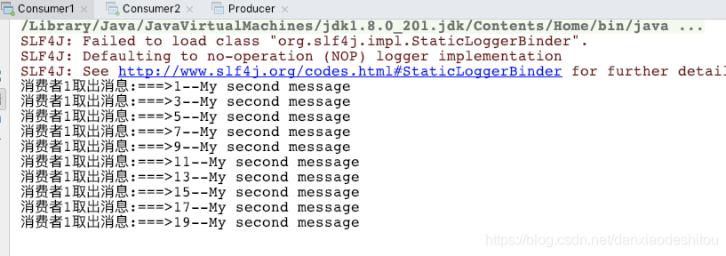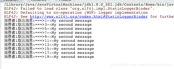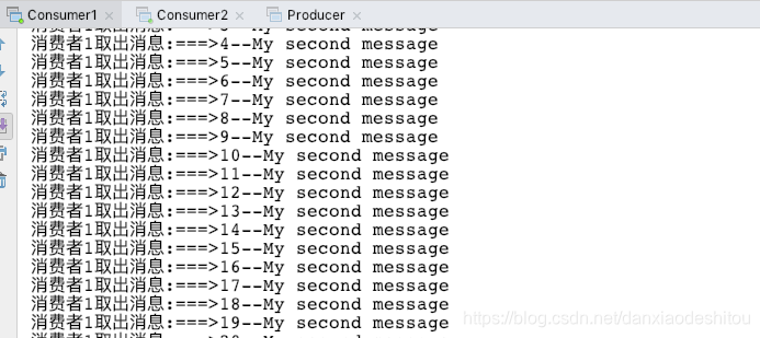 总结:默认情况下,RabbitMQ将按顺序将每个消息发送给下一个使用者。平均而言,每个消费者都会收到相同数量的消息。这种分发消息的方式称为循环。