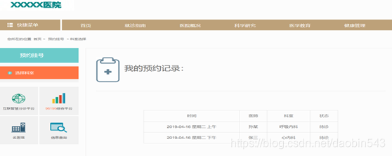 图4-6预约挂号科室信息页面