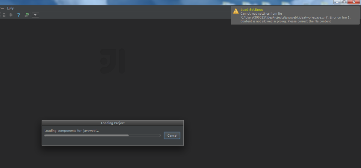 这样的错误没见过,先要解决错误就要了解错误是怎样造成的,我知道找到这个javaweb的workspace.xml这个文件,打开一开直接乱码了,首先解决的办法就是从其他项目下copy一个workspace.xml过来,然后重新编译一下,我从我之前的项目拷贝了一个过来,然后重新启动这个javaweb这个项目,直接就好了,问题解决。