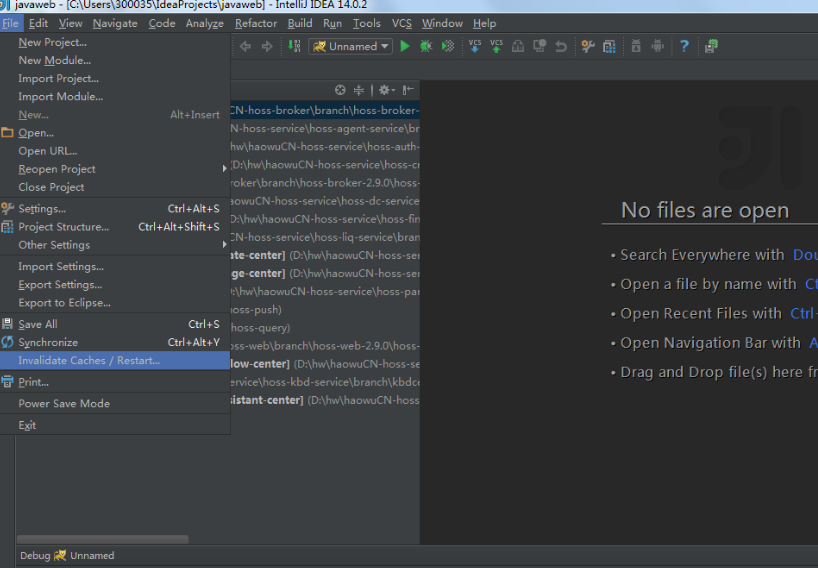 点Invalidate Caches / Restart …它也会将.idea文件重新打一个,这样就不会乱码了。