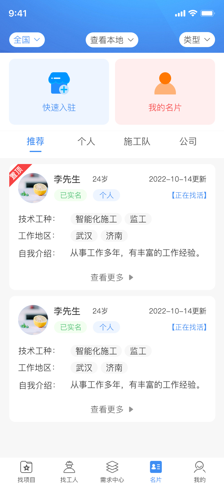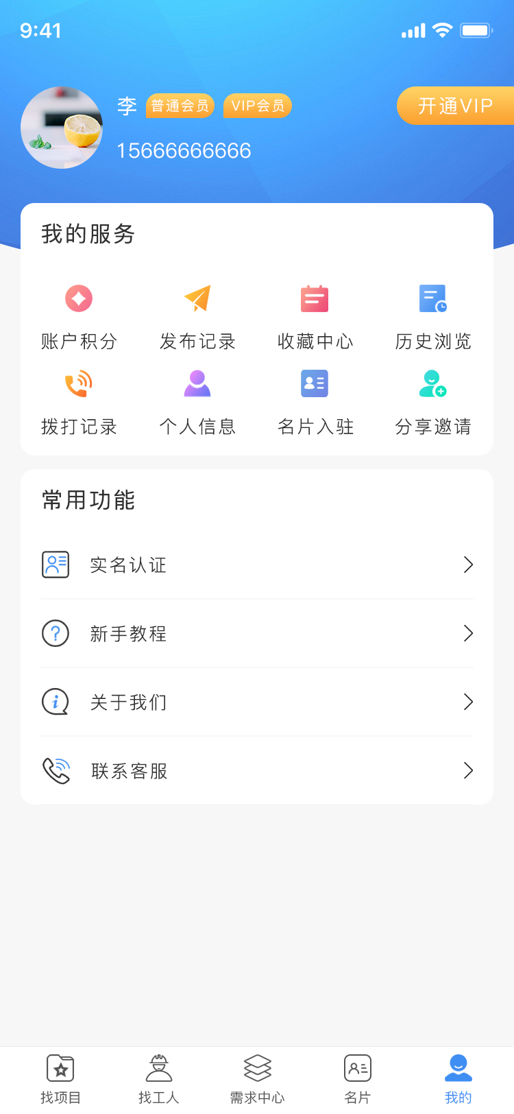名片功能 :可以填写自己的信息 可以是个人 也可以是公司