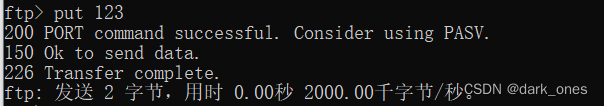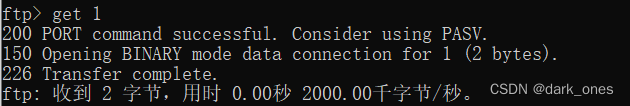 服务器选择一个端口 传出数据 服务器告知客户端 使用服务器指定的端口进行数据连接传输