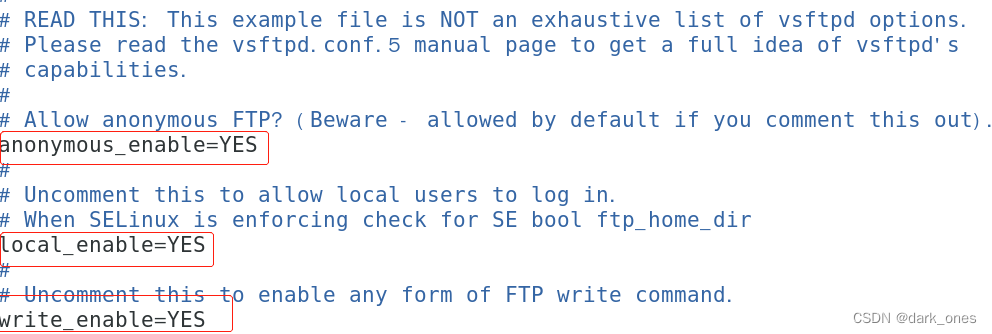 1.vim /etc/vsftpd/vsftpd.conf ##(改完重启服务systemctl restart vsftpd)