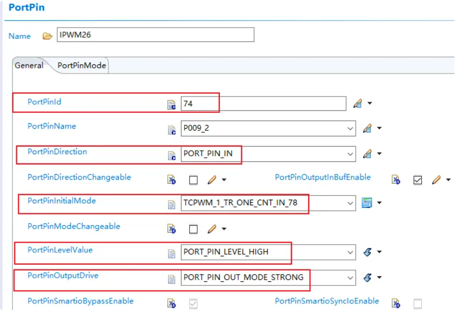 PortpinName:引脚名称,选择与PortPinId不符会报错。