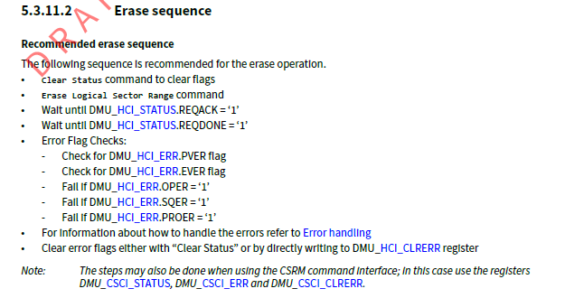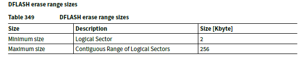 - Dflash的sector大小为2048 Bytes。单次擦除的起始地址必须为sector大小的整数倍。
