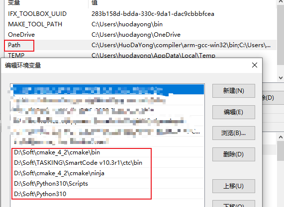 下载好这些工具后,将Cmake、ninja以及python都添加到环境变量中: