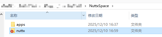 下载好源码后,将app包解压并更名为apps,与nuttx源码置于一个路径下。如果没有app,可能会出现链接阶段报错的情况。