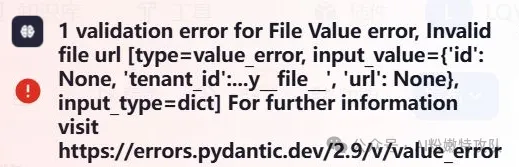 现象: 通过 URL 方式上传文件时出现 pydantic 验证错误。