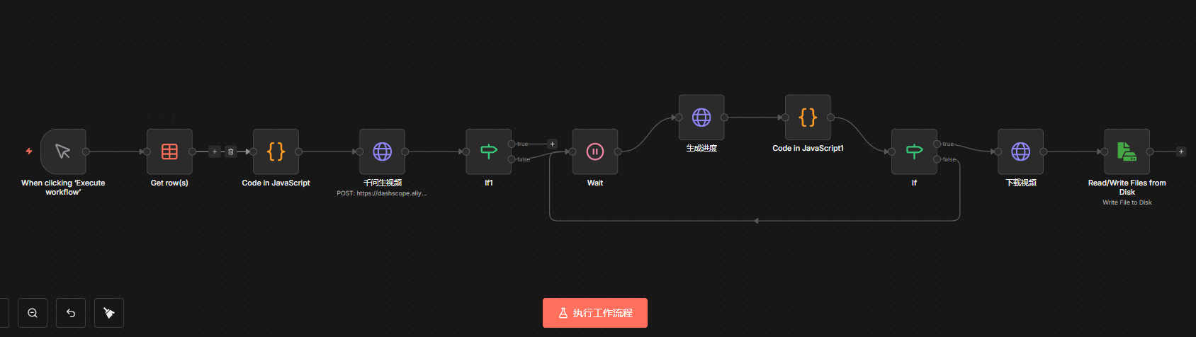 这里使用阿里的 wanx2.1-vace-plus 模型生成视频,视频生成需要较长时间,所以添加 Wait 节点并调用 https://dashscope.aliyuncs.com/api/v1/tasks/ 接口,直至返回 SUCCEEDED