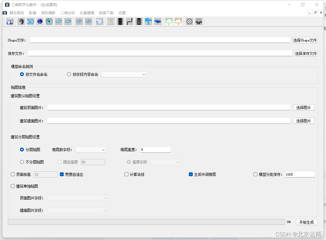 1. 点击矢量建模菜单下的生成建筑打开建筑生成对话框,如下图: