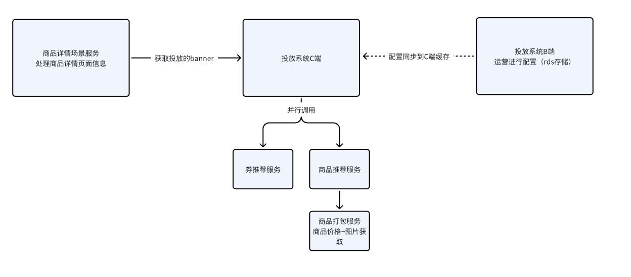 在商品详情页面有一个banner位,最初产品形态为静态图片,为了增加吸引力,支持在banner上展示优惠券和商品,券信息和商品信息需要经过算法推荐